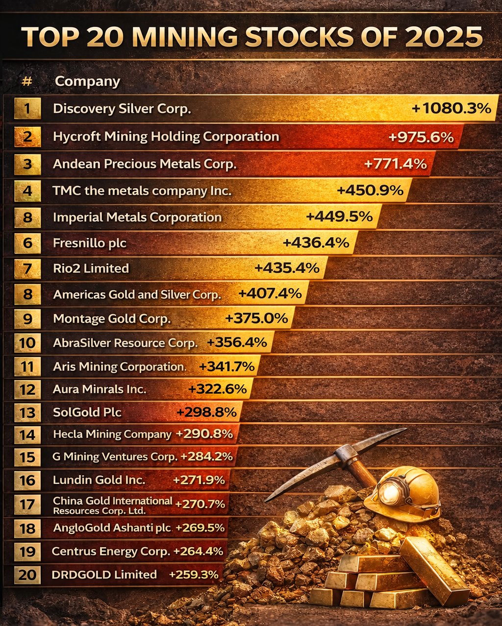 >>61577748copper up 1%, silver up 2%, all indexes up .5%Lets hope the first day of the year is a bullish one>>61577766They dont have enough ore. They have been buying pre-refined product to turn into industrial metal. Their only hope is to use the mass amount of slave labor to make electronic recycling profitable.