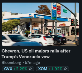 Trade the news long term play trump will sell all that low yield crude to China via boat better news for tanker companies than for chevron
