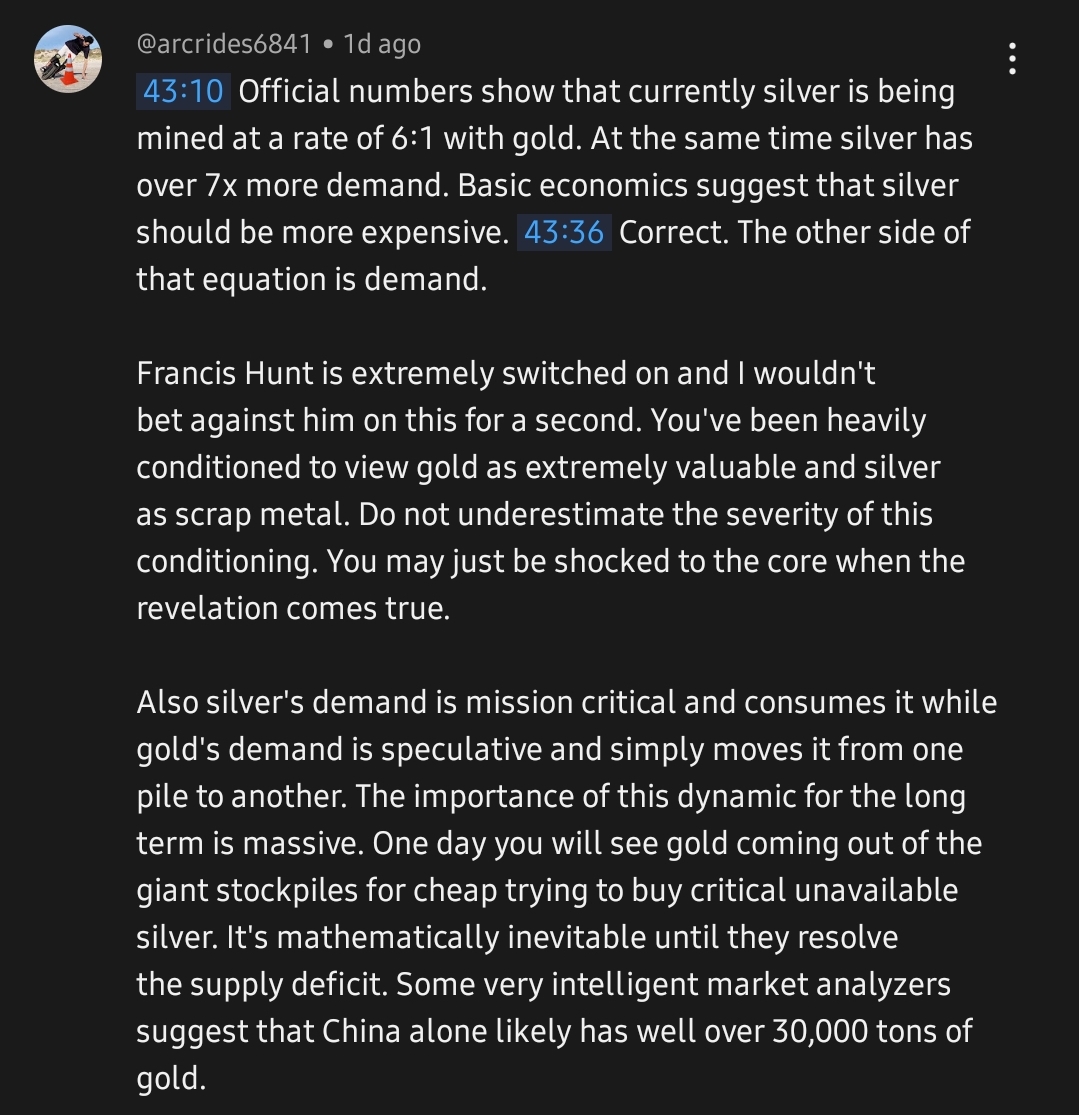 get toned editionBreaking Through Edition>Why Gold & Silver?https://youtu.be/i3S4rl6ehiI [Open]https://youtu.be/gksenA5Al_A [Open]https://youtu.be/FI7NnOg2rxo [Open]>Huge deficits in minerals such as silver by 2050 inevitablehttps://youtu.be/iibsrDXdEos [Open]>Bullion dealershttps://libertycoin.com/ (US)https://www.chards.co.uk/ (EU/UK)https://www.silburycoins.co.uk/ (Ancient)https://www.luciteria.com/ (Other rare metals)https://www.ma-shops.com/ (Numismatics)https://www.goldeneaglecoin.com/ (US)https://stoutgold.co/ (US)https://www.aydincoins.com/ (US)https://prospectorsgoldandgems.com/ (US)more at:https://pastebin.com/gZfZHtNE>Numismatic searchhttps://en.numista.com/catalogue/https://www.ngccoin.com/price-guide/world/>News and graphshttps://numismag.com/en/home-en/https://silverseek.com/https://www.silverdoctors.com/https://www.mining.com/https://silverbacksnakes.io/finance/silverhttps://www.gold.org/goldhub/data/gold-reserves-by-countryhttps://wtfhappenedin1971.com/>Comparehttps://findbullionprices.com/ (US)https://eu.compare.pm/ (EU)https://www.gold.de/aufgeldtabelle/ (DE/EU)>Resourceshttps://www.jmbullion.com/ultimate-guide-to-90-silver-coins/https://kevinsworkbench.com/junksilverguide/https://www.coinflation.com/http://coinapps.com/https://erikasgrig.com/calculators/rpi-calculator-inflation/https://learn.apmex.com/buying-guide/buying-in-the-usa/https://pastebin.com/5aLmWUUK>Prospectinghttps://www.youtube.com/watch?v=ZCL6FKQZyoM&feature=youtu.be [Open]https://www.usgs.gov/programs/mineral-resources-program/sciencehttps://www.mndm.gov.on.ca/en/news/mines-and-mineralshttps://www.amazon.ca/Gold-Creeks-Ghostowns-British-Columbia/dp/088839988X>Nitric acid, magnets, and ping testhttps://youtu.be/3mg9YcAShTo [Open]https://youtu.be/NgSXg-WOEVY [Open]https://youtu.be/2ymGAyKAg-k [Open]https://www.fakebullion.com/index.php/resources/fake-bullion-databaseLast Thread >>61598252