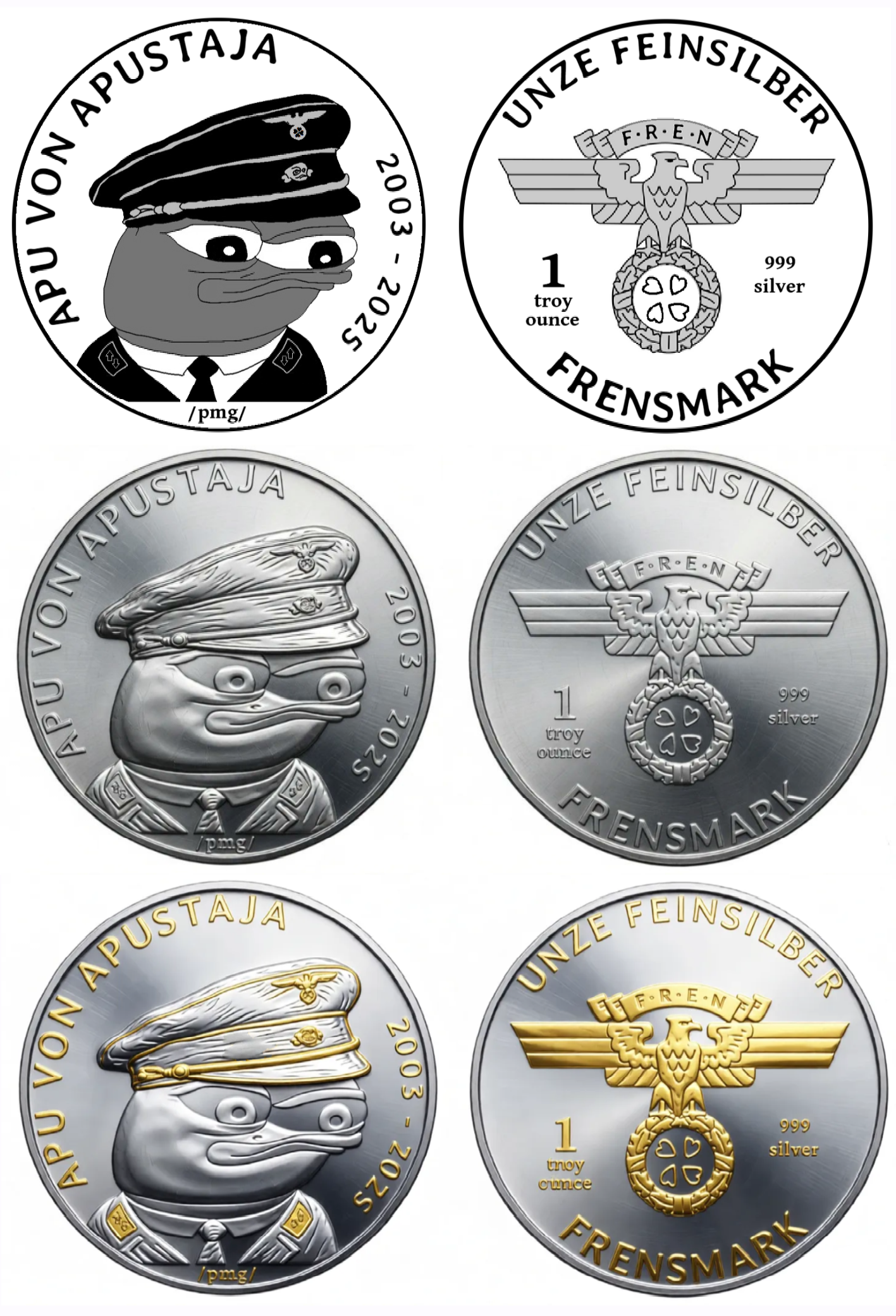 >>61603138This anon made some progress contacting mints. Very encouraging.I made the ai renderings in the op.Give me a few days and I'll make a legit 3d model that a mint can use. I would really appreciate it a gilded version is made. It is just gold plate, should be trivial for the right mint to accomplish.