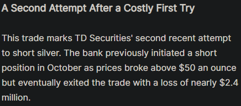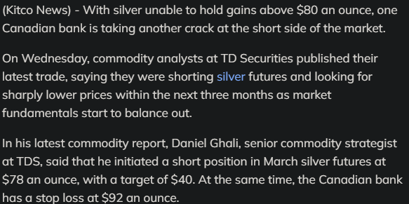 pmgbros, a thought occurs. How different is AG's run up to nickel's run back in 2022? Isn't it the same dynamic where a supply-side crunch leads to a massive price squeeze? Does this mean we should fully expect at least a -70% dump from whatever it eventually tops out at (potentially in March)?
