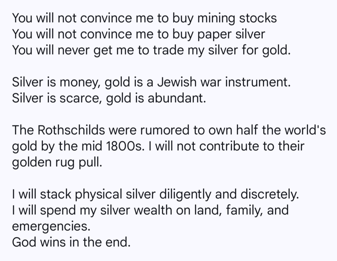 >>61638131This is why I don't actually own any silver. I just enjoy these threads.