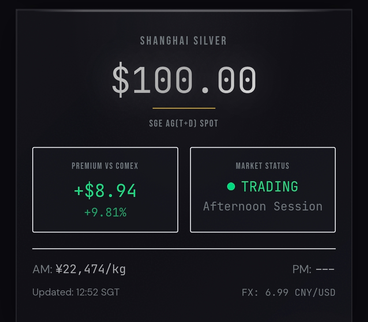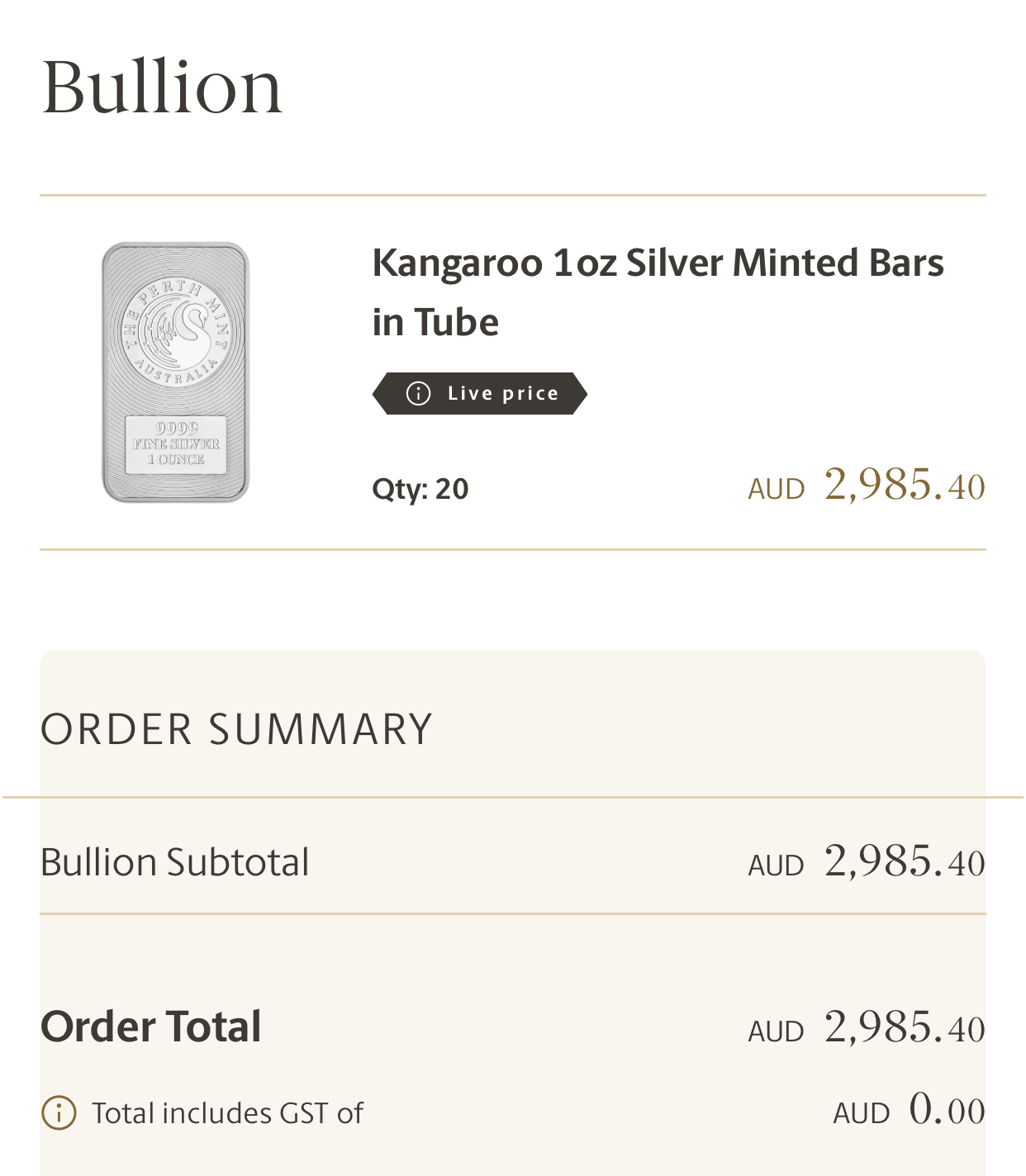 International shipping was higher than I initially thought and the difference in price wasn’t enough to justify the risk of an uninsured flight Vs in person pick up so I copped the local premiums. I think the converted price is 99.99 so if we truly surpass $100 I’m in the green. Though I did already buy a 1kg bar and 20 oz of other coins a couple days ago so I’m already clear on both of those
