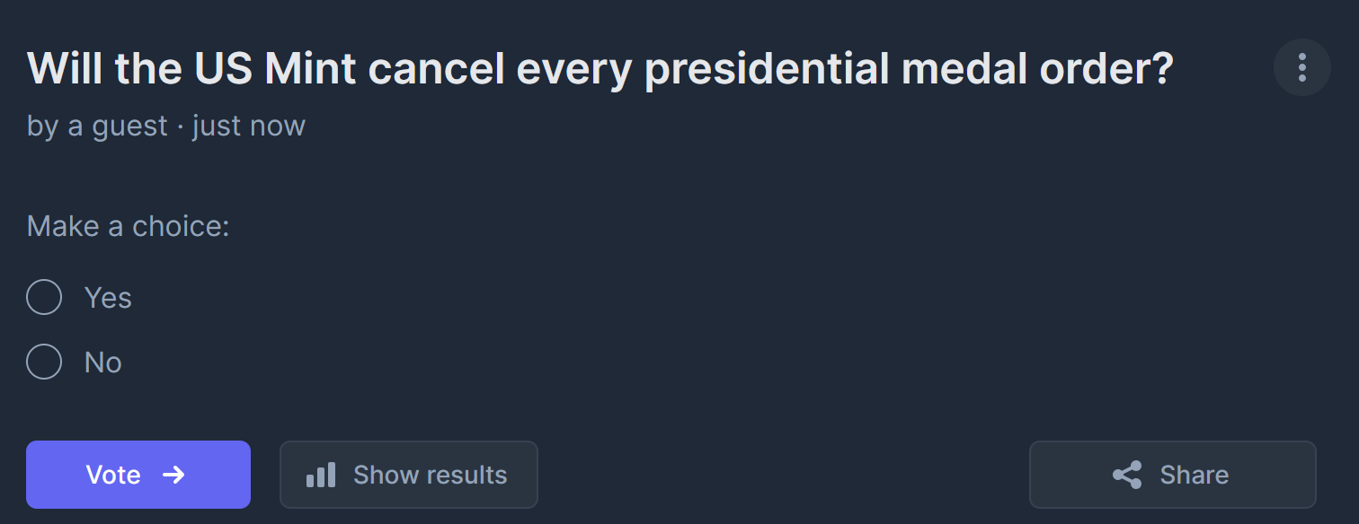 I wonder if USMint will cancel the orders tomorrow when the DEI hires the run the web store get to work and see over six million orders for Andrew Jackson medals