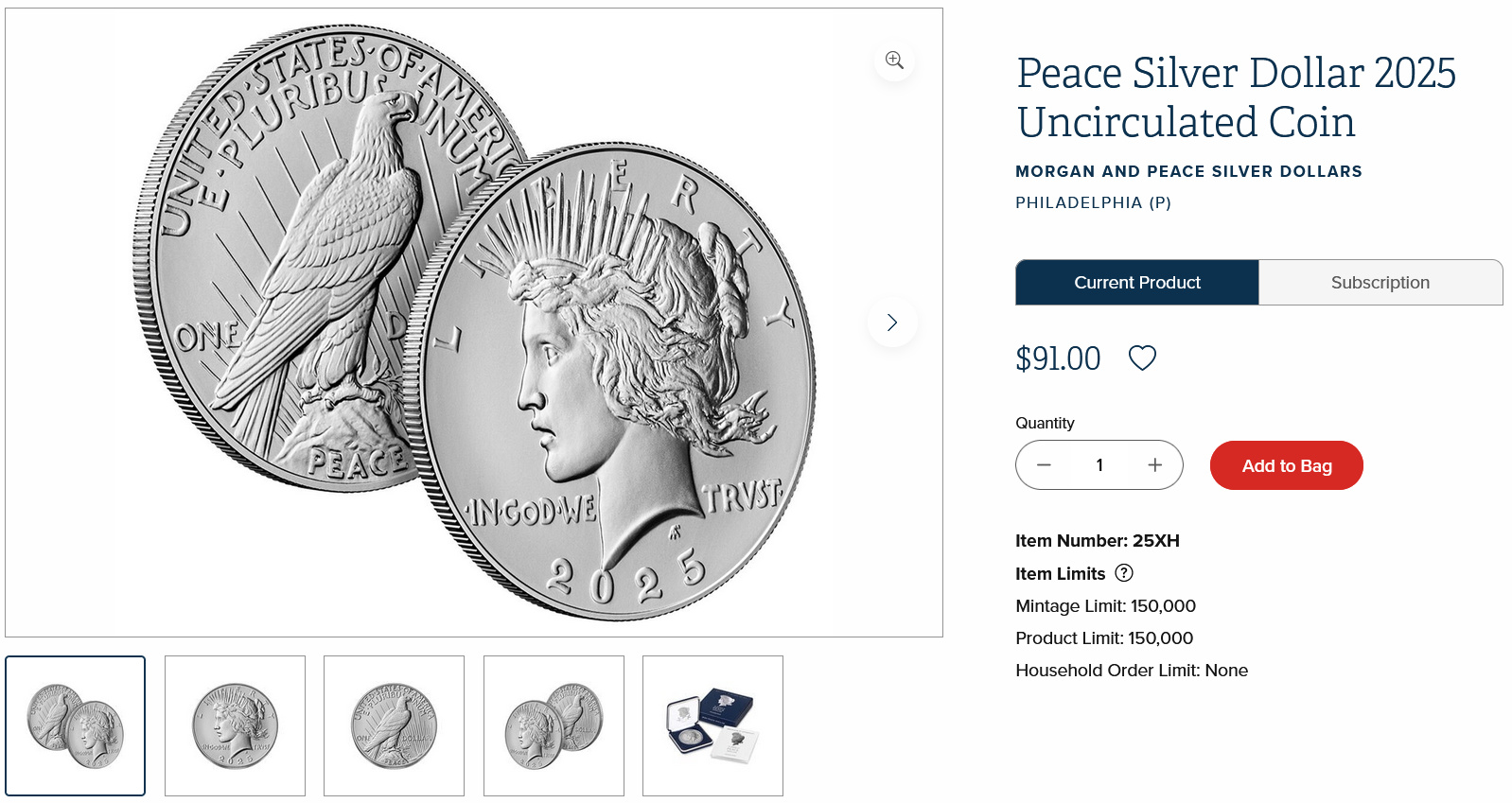 Did you guys notice this for $1 more?https://www.usmint.gov/peace-silver-dollar-2025-uncirculated-coin-25XH.html