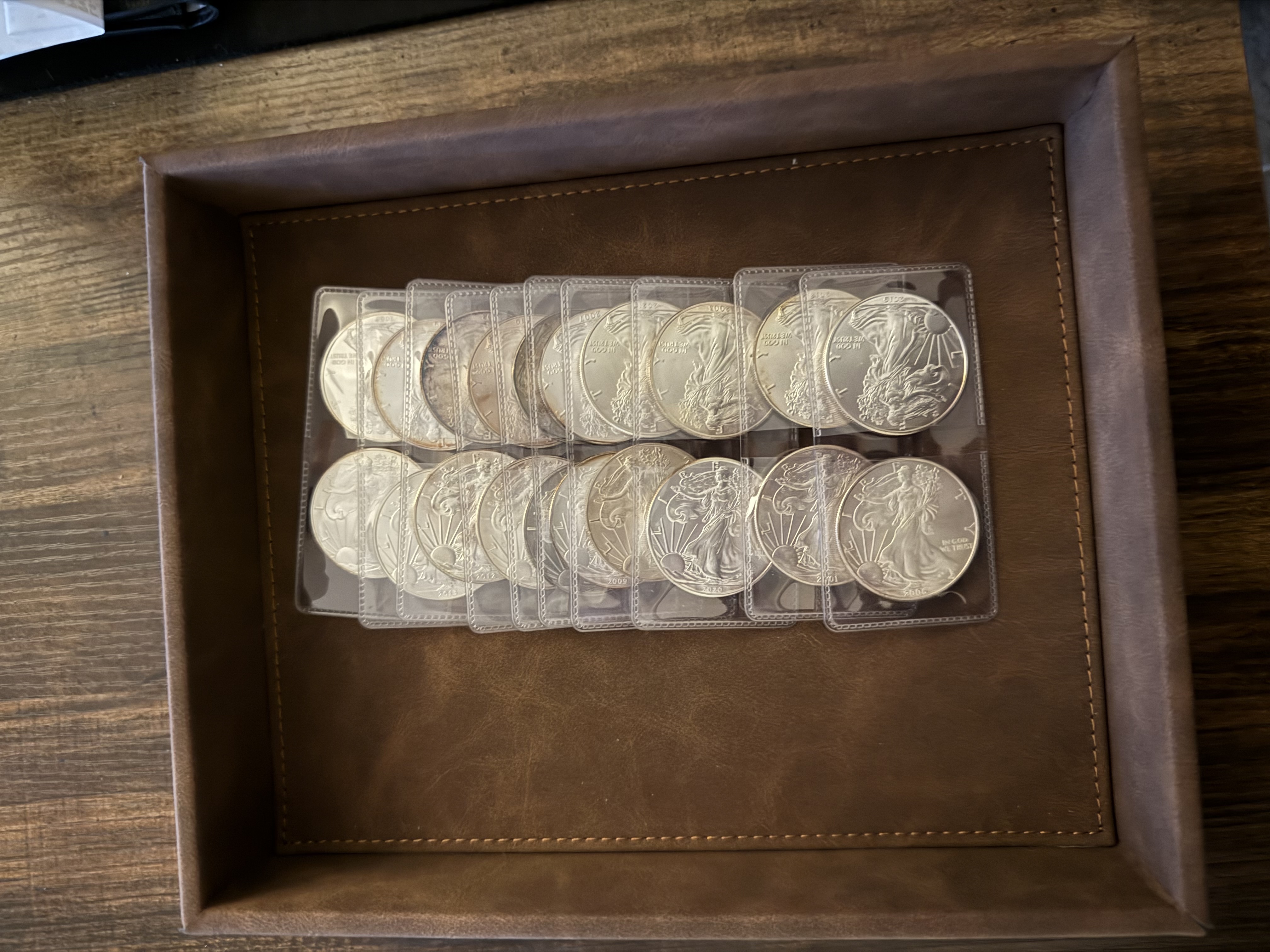 >>61638498People will probably make fuck of you but here's just my honest answer for storage.>ASE tubes because they're so wide they can fit any 1oz coin pretty much because of their width>some kind of waterproof sealing ammo can>a good safe>a gunHere's an example of my setup from like 3 years ago.
