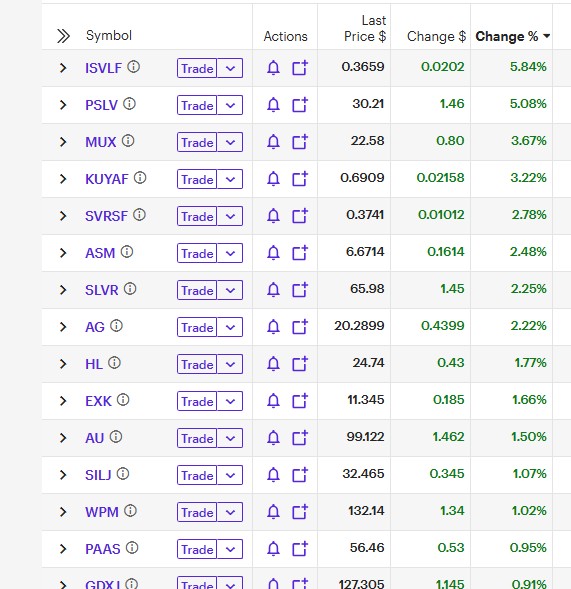 >entire port is red except silver>up 9% today