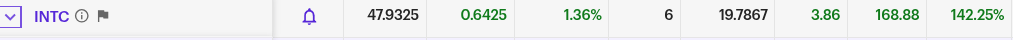 >>61641398The PEG is still below .. That means their revenues have grown two and a half times as fast as the price of their stock. Their forward PE is around 10. Their EPS earnings this year are up 200%. It's insane how much money they're making. I've been on this crazy train for only two months and made 40%. It is now the single largest holding I own. I am confident of doubling my investment this year... but I'm not betting the farm, either.My advice? Grab some. Wait for it to go up enough that you feel safe, then buy a little more. Then a little more. To hell with buying the dips -- buy the upswing. And have a trailing stop order for like 205-25% in place, because when semiconductor stocks fall, they fall hard. Look at Micron's performance in the 1990's.