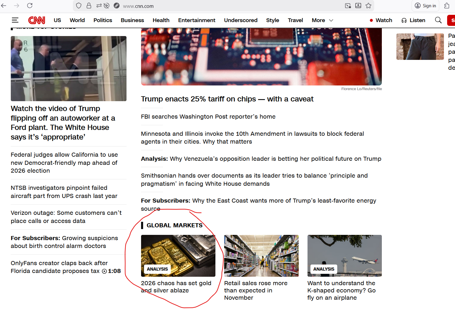 It's not the front spot on CNN, but it's officially on the front page as the top global markets story.