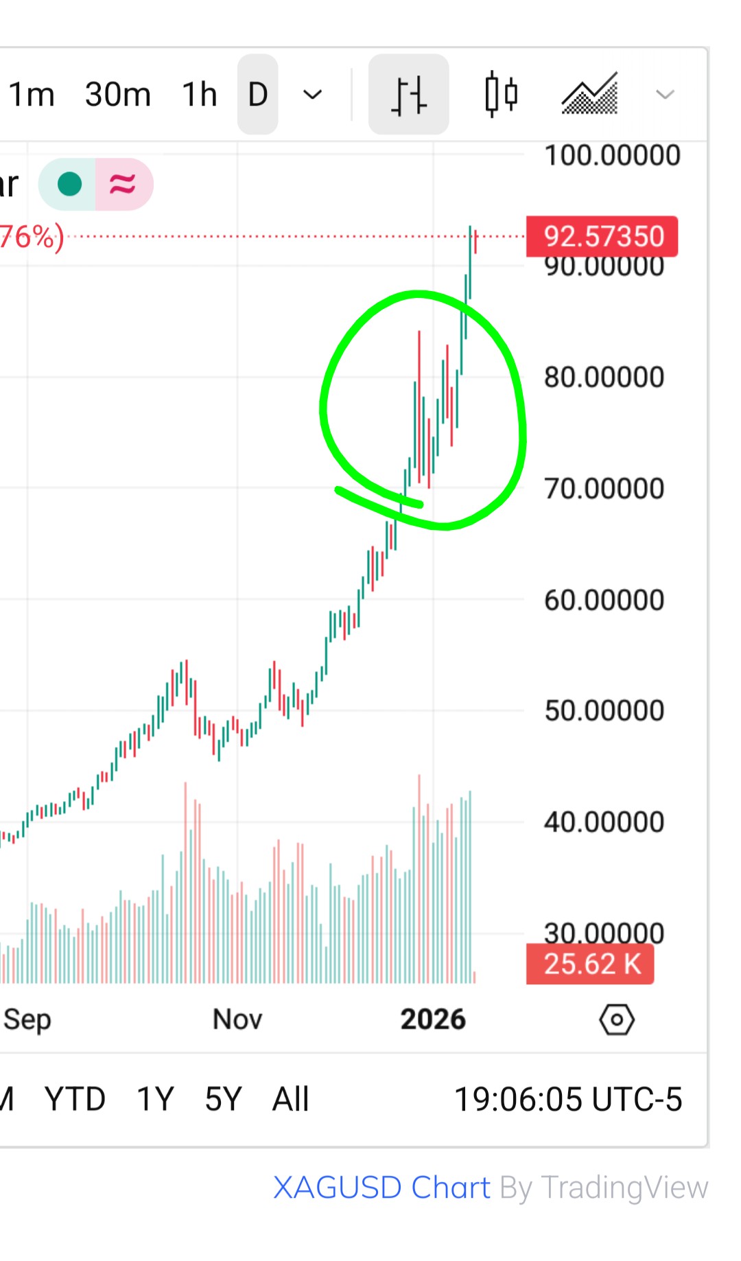 >>6164264180-90 took 4 days if you don't count the weekend where trading is paused. So 100 before EOW or 100 on new week's start. This is a major important resistance level, but all news stories are now bullish on silver because 100 is a major milestone - meaning we probably will NOT crab below 100, and when we reach 100 we pop up.Automatic sell orders are the only thing that are a threat now - we'll likely pop up to 100 either friday or monday, shoot way above, and then slam down because automatic sell orders are placed at 99.99.