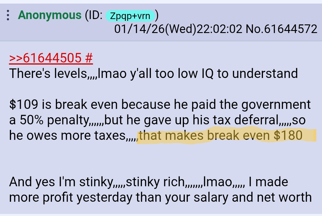 The real IQDELET is the 4o1k loser. Lmao can you imagine the psychic pain of being right about silver but such a financial incel you forgot to read the tax code? Mogged!
