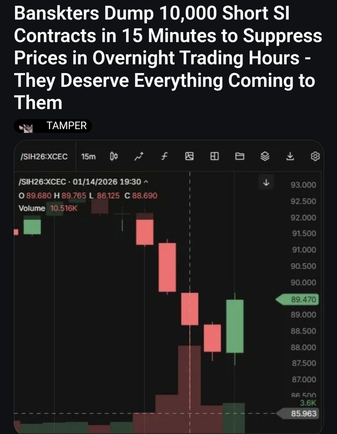 silver PLUMMETS to just 89 USD. STUNS stackers and FOMOs. (vid stolen from the guy that usually posts these)