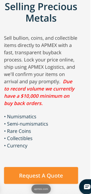 >>61644356They don't specify that the $10k minimum is for SELLING to APMEX..
