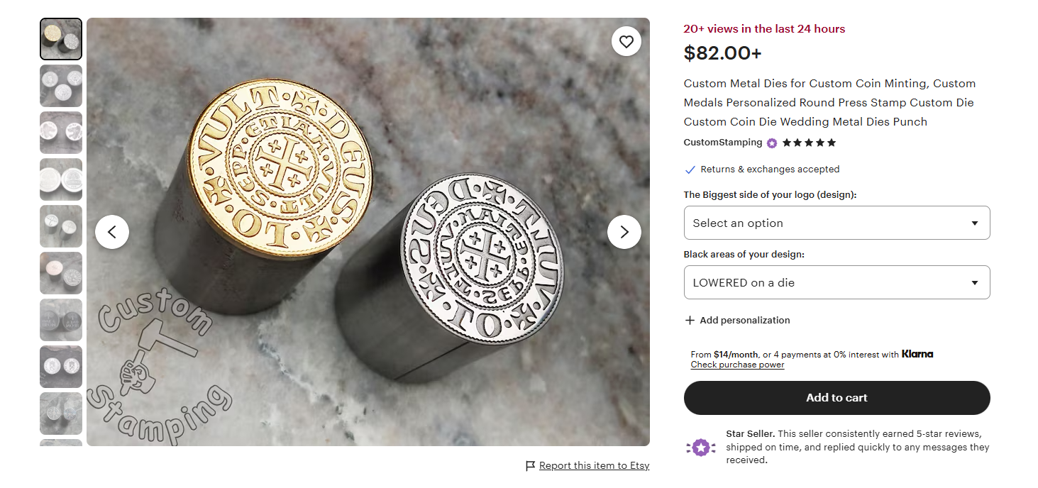 >>61644702If I went for stamped pieces like pic related that could work. Ounces would increase as we increased design size. You are right that these smaller designs would be far more accessible.