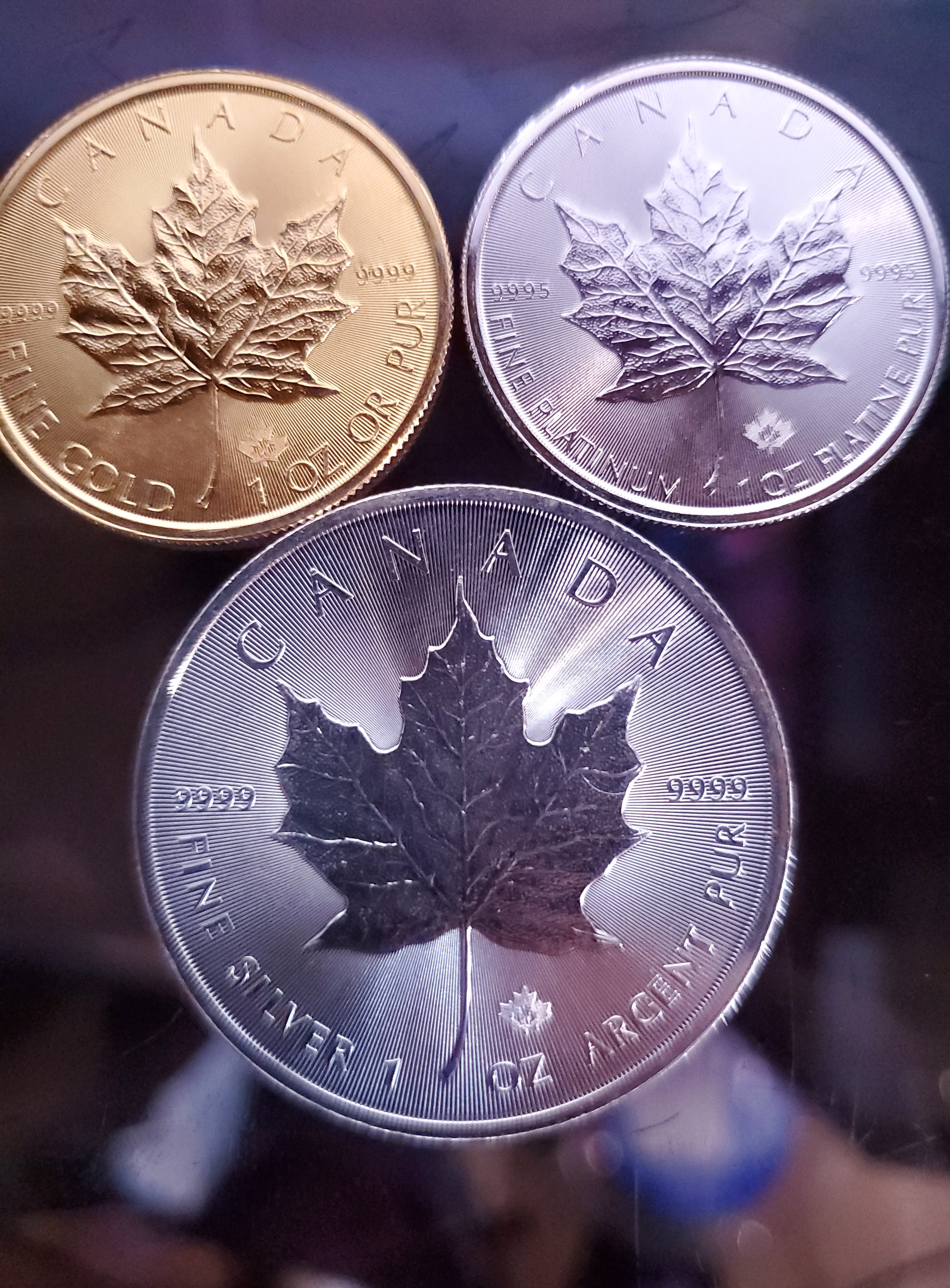 >>61646885Gold is 19.32 grams per cubic centimeterSilver is 10.49 grams per cubic centimeter.Platinum is 21.4 grams per cubic centimeter.Platinum coins tend to be the same diameter as gold, but slightly thinner.