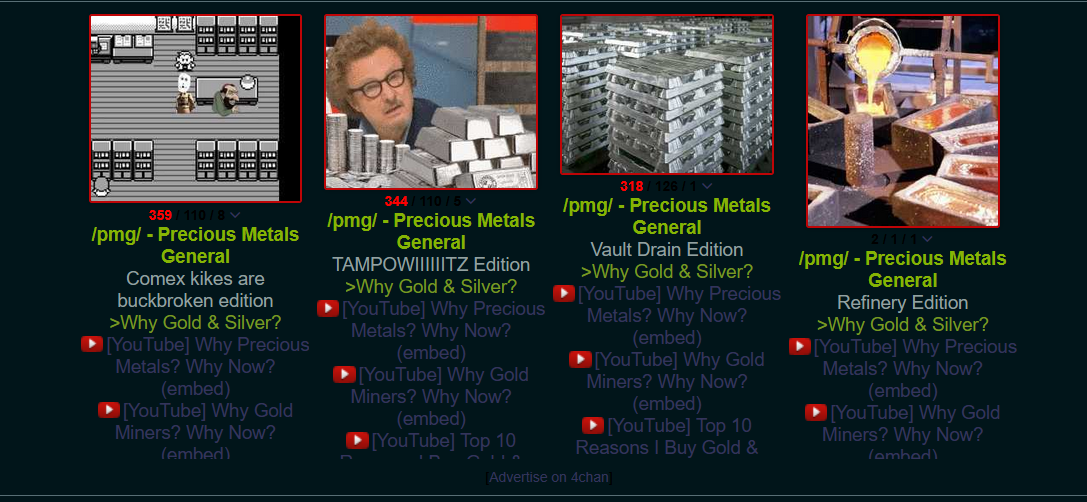 The Recovery Edition>Why Gold & Silver?https://youtu.be/i3S4rl6ehiIhttps://youtu.be/gksenA5Al_Ahttps://youtu.be/FI7NnOg2rxo >Huge deficits in minerals such as silver by 2050 inevitablehttps://youtu.be/iibsrDXdEos>Bullion dealershttps://libertycoin.com/ (US)https://www.chards.co.uk/ (EU/UK)https://www.silburycoins.co.uk/ (Ancient)https://www.luciteria.com/ (Other rare metals)https://www.ma-shops.com/ (Numismatics)https://www.goldeneaglecoin.com/ (US)https://stoutgold.co/ (US)https://www.aydincoins.com/ (US)https://prospectorsgoldandgems.com/ (US)more at:https://pastebin.com/gZfZHtNE>Numismatic searchhttps://en.numista.com/catalogue/https://www.ngccoin.com/price-guide/world/>News and graphshttps://numismag.com/en/home-en/https://silverseek.com/https://www.silverdoctors.com/https://www.mining.com/https://silverbacksnakes.io/finance/silverhttps://www.gold.org/goldhub/data/gold-reserves-by-countryhttps://wtfhappenedin1971.com/>Comparehttps://findbullionprices.com/ (US)https://eu.compare.pm/ (EU)https://www.gold.de/aufgeldtabelle/ (DE/EU)>Resourceshttps://www.jmbullion.com/ultimate-guide-to-90-silver-coins/https://kevinsworkbench.com/junksilverguide/https://www.coinflation.com/http://coinapps.com/https://erikasgrig.com/calculators/rpi-calculator-inflation/https://learn.apmex.com/buying-guide/buying-in-the-usa/https://pastebin.com/5aLmWUUK>Prospectinghttps://www.youtube.com/watch?v=ZCL6FKQZyoM&feature=youtu.behttps://www.usgs.gov/programs/mineral-resources-program/sciencehttps://www.mndm.gov.on.ca/en/news/mines-and-mineralshttps://www.amazon.ca/Gold-Creeks-Ghostowns-British-Columbia/dp/088839988X>Nitric acid, magnets, and ping testhttps://youtu.be/3mg9YcAShTohttps://youtu.be/NgSXg-WOEVYhttps://youtu.be/2ymGAyKAg-khttps://www.fakebullion.com/index.php/resources/fake-bullion-databaseLast Thread >>61645391