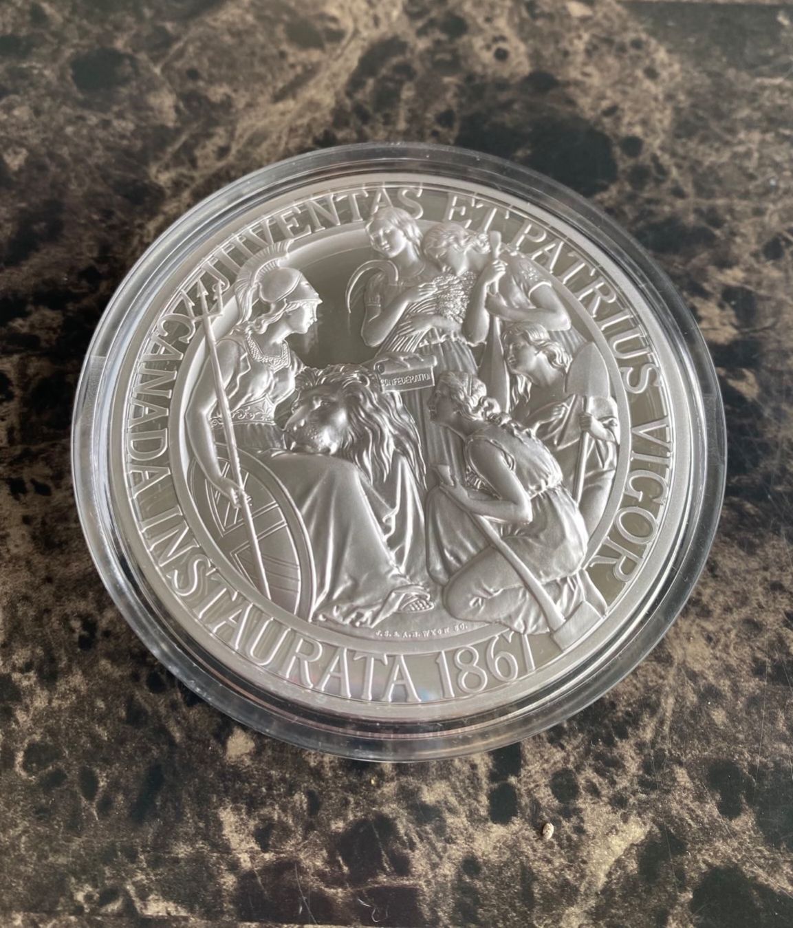 >>61647737It says 1 ounce fine silver in German on the top line. There was a lot of talk with the redundant text and I think this version looks pretty good and honors the original marks pretty well.