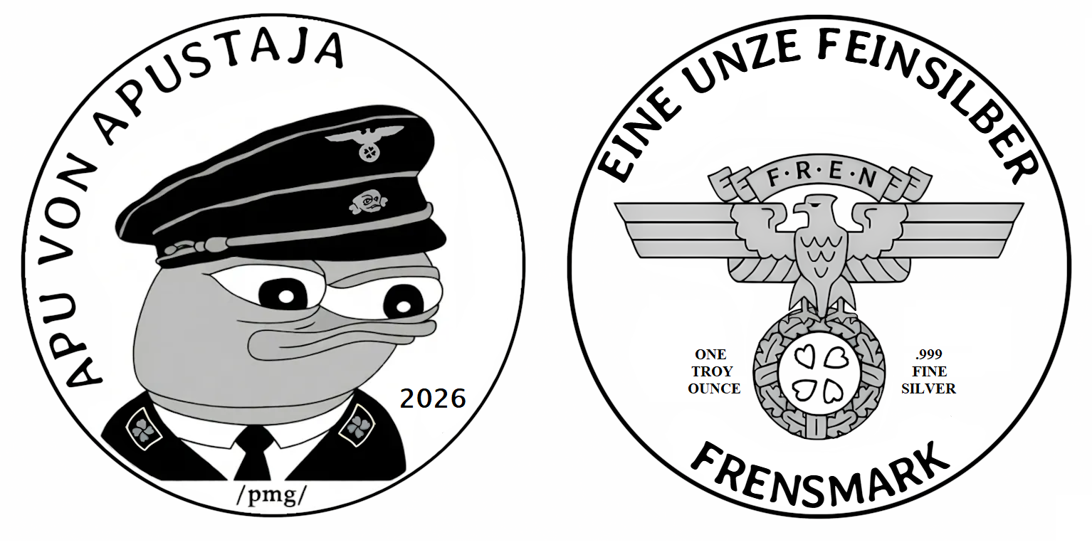 >>61647656MintAnon is still around, he came in with an update on the Cheesed rounds recently. He's moving along with those and hopes to open up the sale again once he gets some production samples. He is staying off the Frensmark round for now since he doens't have tooling in house, so I've surmised the project manager role for the time being and am going to talk with mints this weekend (and actually post the quotes they give back as well)>>61647716I think this is perfect. Has the proper german, the right eagle, and the whole 1toz is great. Thank you, anon, splendid work. I will take this to the mints if there is no other objections.