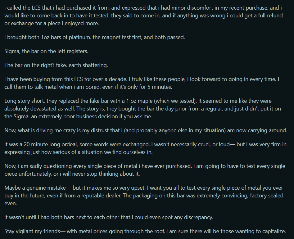 >buy metals >Get scammed by my reputable sellerkek. good luck with your fake metals baggies