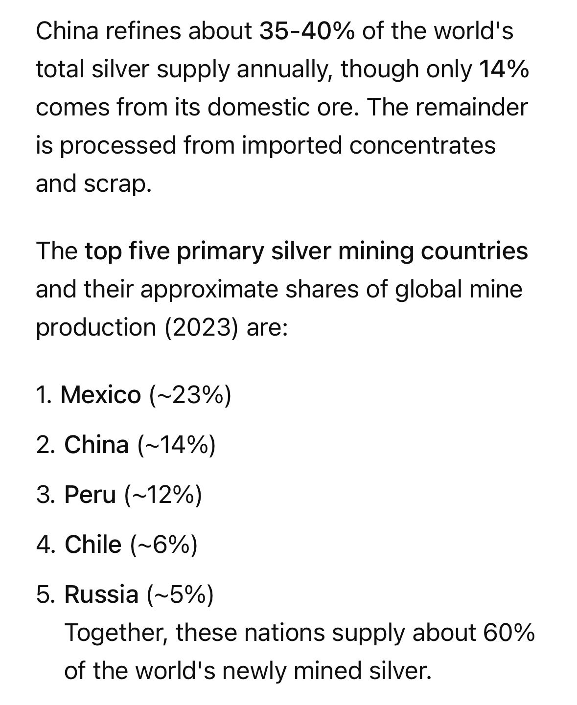 >>61651689Something to note also. It’s not just that it’s not leaving China (refined). It’s that the US has basically ZERO refining capacity. They are trying to scoop up silver ore from S America. But they can’t refine it. Will takes years to build capacity to get actual silver 999 out of it. So this bull run ain’t ending any time soon.