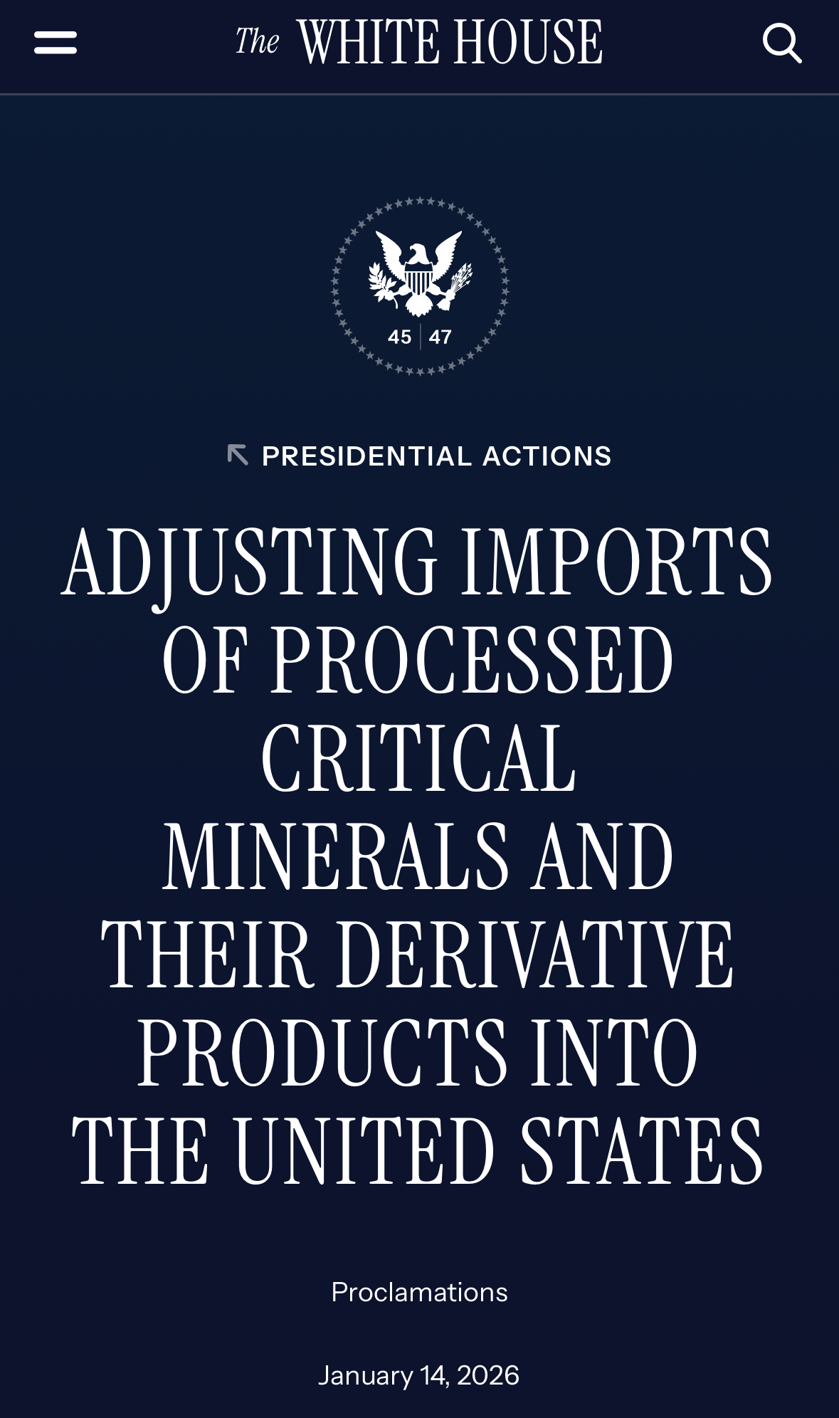 >>61651712Guys. Read this presidential proclamation. They realise they have no refinement capacity now. For almost ALL metals. Read it. Price floors being set on everything. We are never going back down. Only up. Very important read. https://www.whitehouse.gov/presidential-actions/2026/01/adjusting-imports-of-processed-critical-minerals-and-their-derivative-products-into-the-united-states/