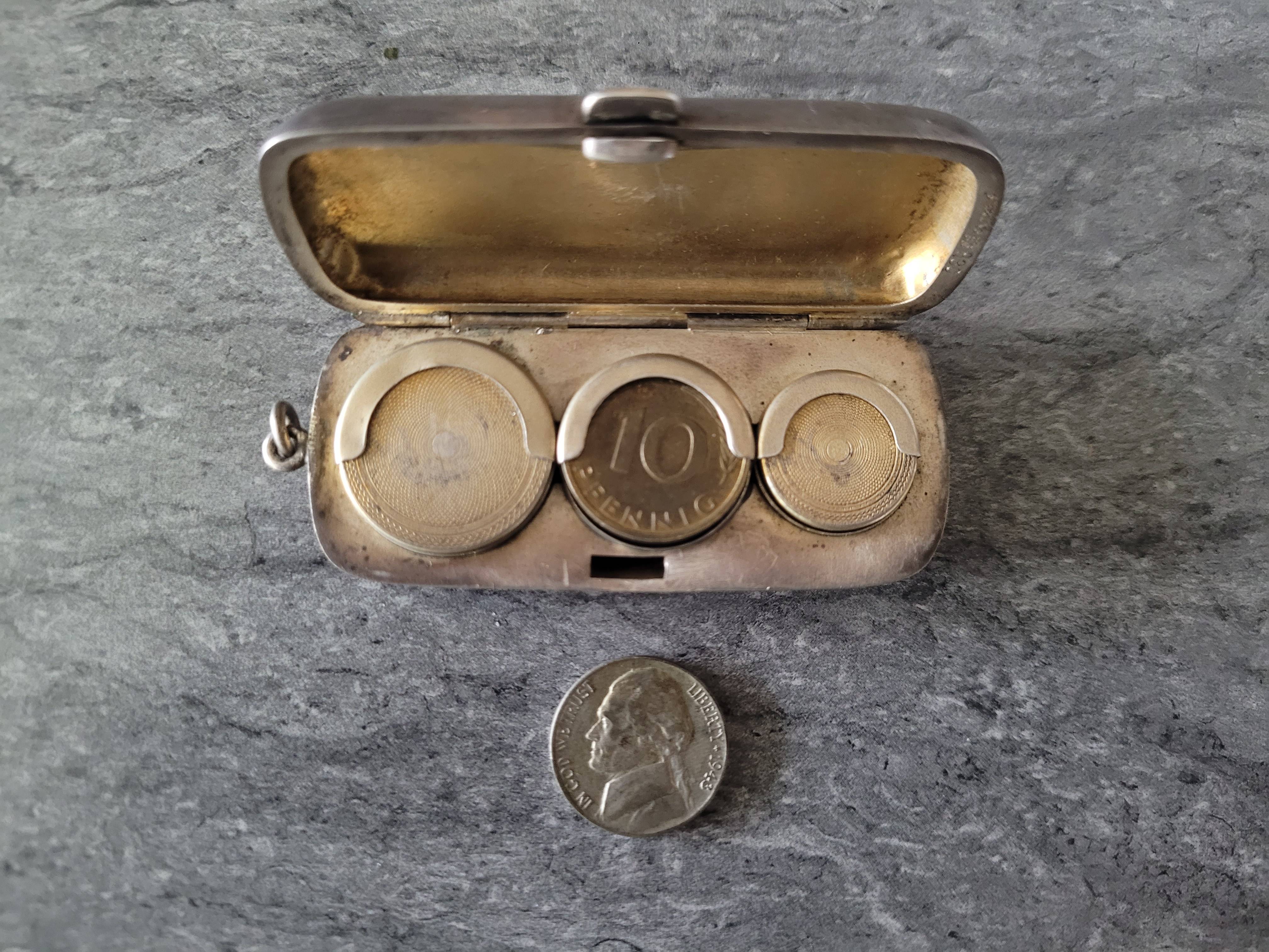 >>61655413Thanks. I'm glad I got it when I did. The nickel part was repaired with a German coin and JB weld by the seller. It holds 3 quarters, 2 nickels and 4 dimes total.