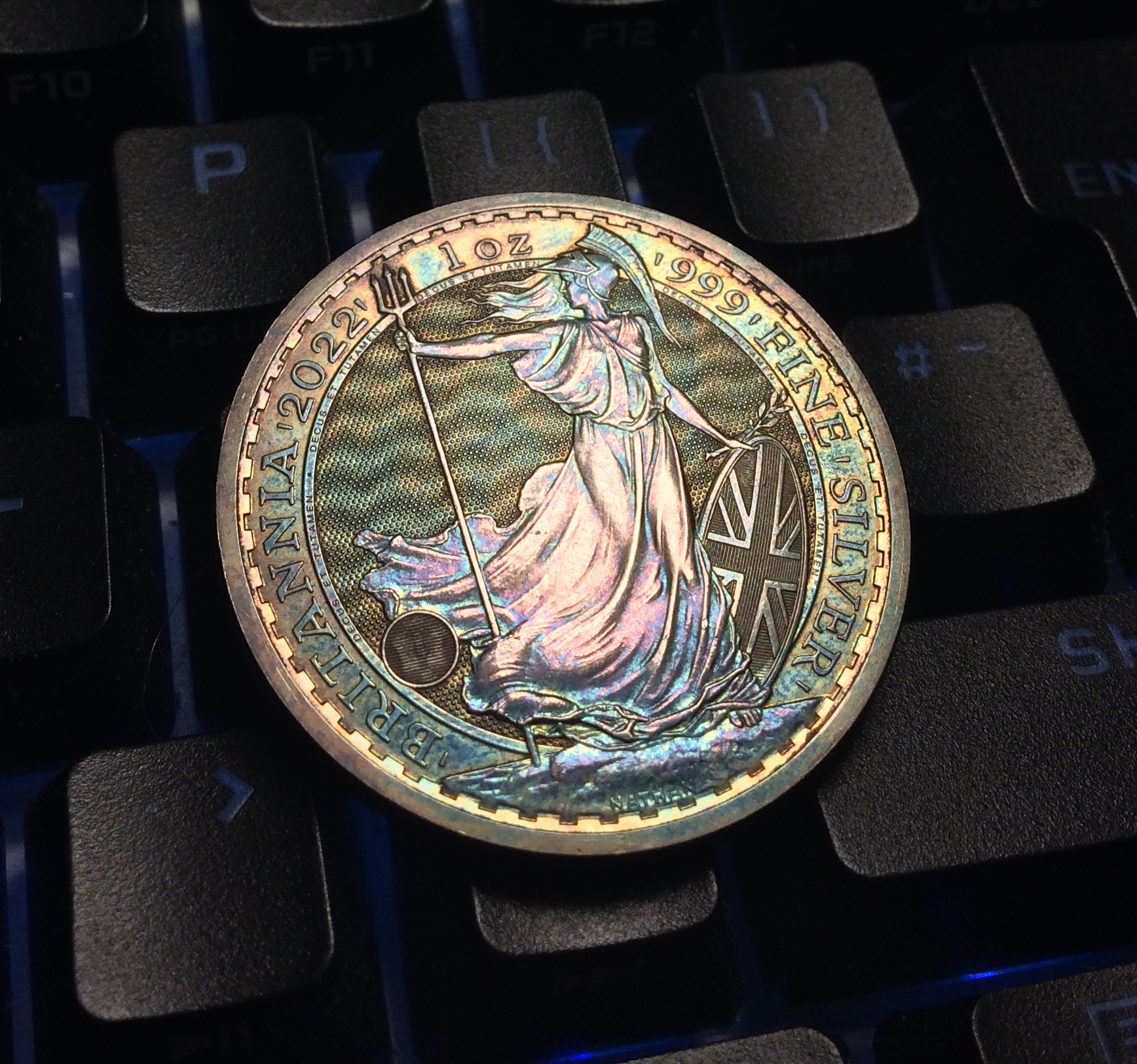 >>61656182If you hard boil 1 egg, then put in sturdy zip lock bag with a coin or two, seal, then squeeze and pulverize the egg through the bag releasing sulfur... Works ok, takes some time, may need to prop up coin for even toning
