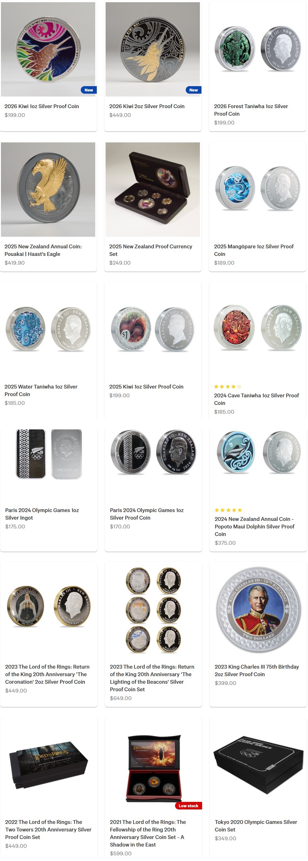 >>61656352Honestly I'm too new to have seen their whole backlog, but right now they're only selling kangaroos for $176ea (Spot is $156)NZ Post has the nice coins, picrelated is what's currently available, but it's always so far above spot