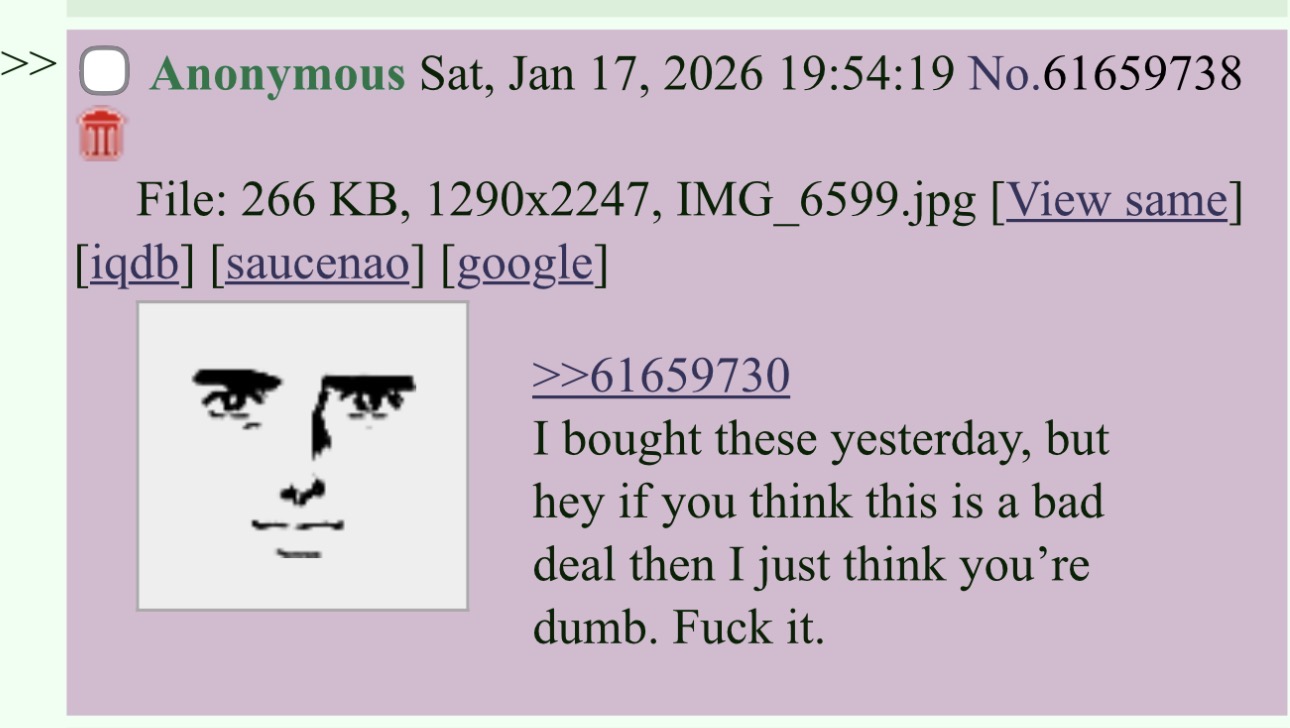 >>61659630Relax bro, your r*ddit moonboy side is showing >>61659080