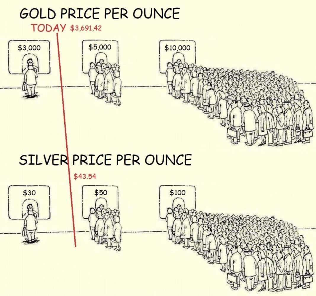 Damn I just read that the global mining output for silver in the year 2024 was 819.7 Mio. oz and the population of earth in 2025 was 8.19 billion people.It's over for nonstackers