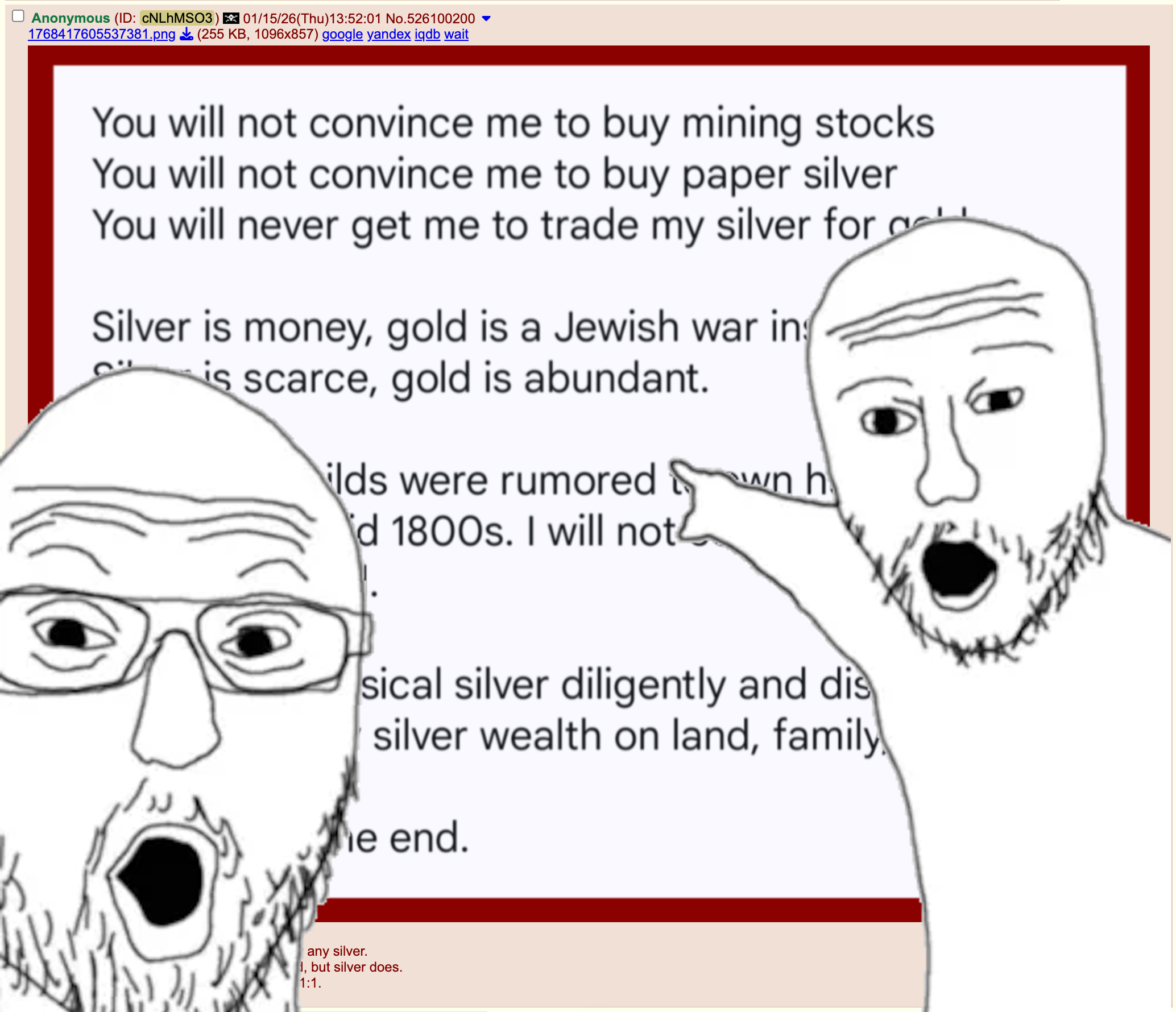 >>61670513Lets take the politics and emotion out of it for a moment. What do you think of the setup analysis I laid out. We already have tight over ground supply. But was probably manageable to keep prices rising in a non volatile manner if they were grownups and co-operated.But If the largest refiners just said no more. And largest ore suppliers (due to the sea embargo) just cut off the refiners supply, with a decade before they can fill this roll. Then both sides seem to have decided to press the nuclear button?There's other supply and above ground. But it looks like the squeezed just got squeezed again. And those smart holding the silver refined supply (west or east) ain't gonna drop it seeing what's happening for small money. What's you take? Objectively. I don't care about the political motivations part.