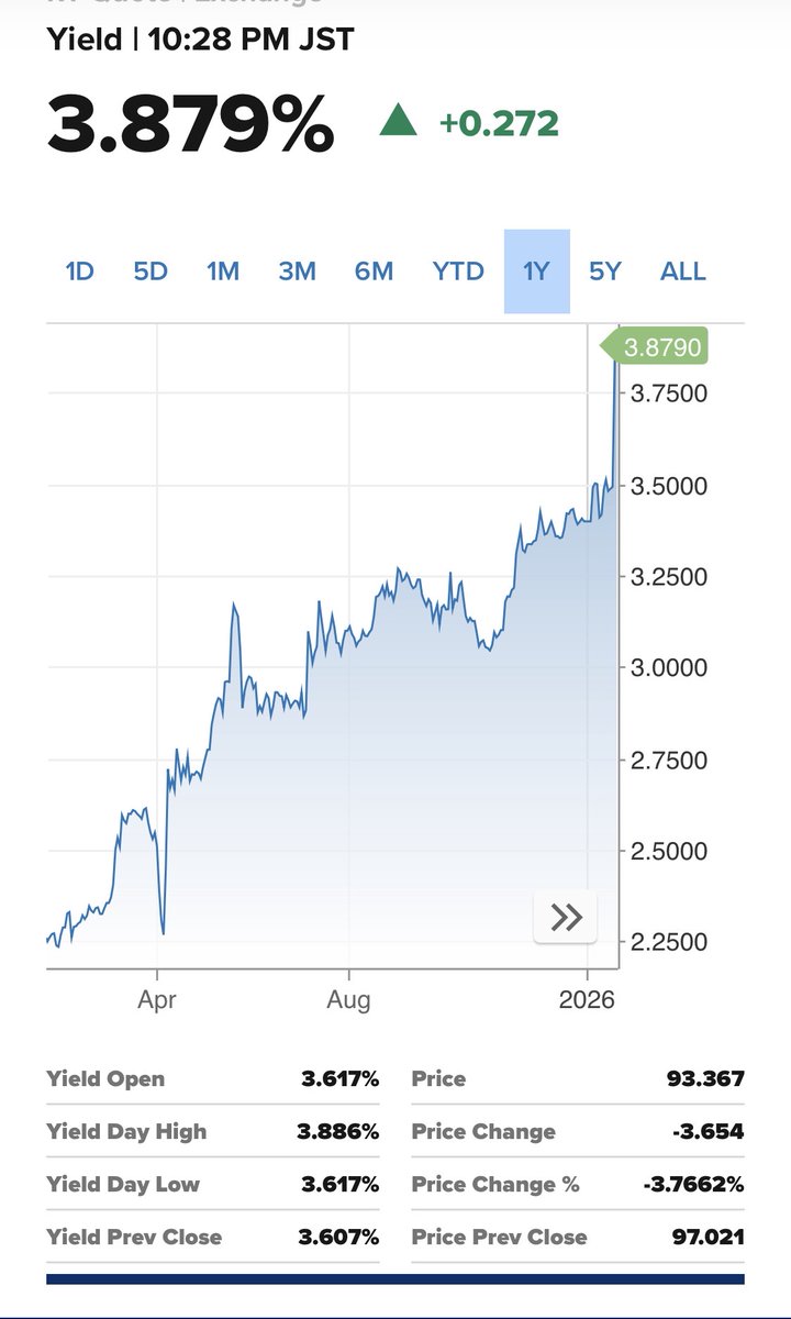 Good news:https://x.com/MichaelInTruth/status/2013639748053565500?s=20>Japanese debt crisis incoming.>Followed by a European and American debt crisis.https://x.com/silvertrade/status/2013610212360327188?s=20>JGBs COLLAPSING>Japanese 30 Year Yield EXPLODES to 3.913%>Last night, we alerted readers that 30 year JGB yields had soared to 3.703%. >Well, the Japanese Debt Crisis just got a WHOLE lot worse, as yields have gone vertical, passing 3.9%, possibly only hours away from 4%. >It appears that we are witnessing the early stages of the supernova end game of a G7 fiat currency collapse in real time. Pic related.Japan is consistently the largest foreign holder of US Debt.When Japan goes down, so will the US dollar.For any newfags, when I say good news, I don't mean that sarcastically.We want the collapse.Every single real life event like Jed emptying his taco stand, the lawsuit (and appeals) ending, all of the steps with ISO20022, Genius Act (stablecoin regulations) did nothing to move the price of XRP.But once we have a worldwide domino collapse of currencies, one after another in rapid succession, they'll have no choice but to implement their new CBDCs and use XRP.Massive increase in trading volume.That's the only thing that moves XRP's price up.I'm going to keep my eye on this.This is looking real good.
