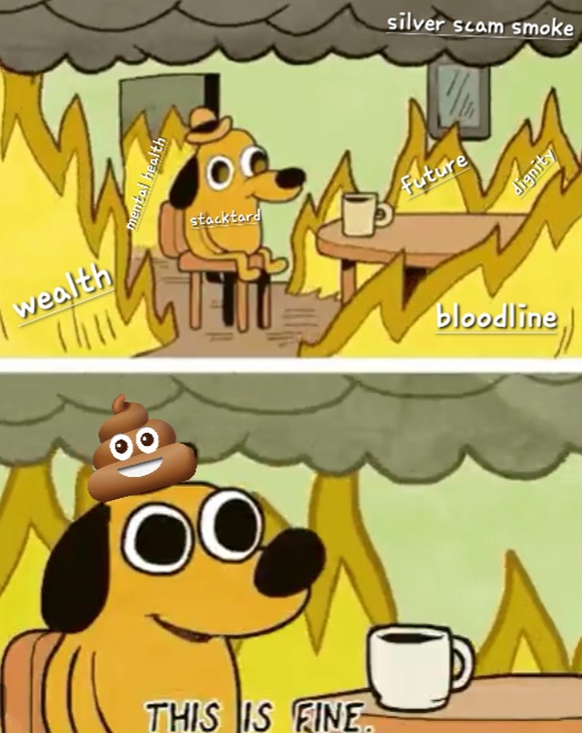 Lmao meanwhile 401k loser suffering continues,,,,,,,,silver doubled and hes still down 50%,,,,,nothing dumber or broker than a stackturd