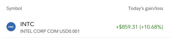 Just sold all my Intel bags for a +140% profit. Big mistake? Time will tell.If it starts pumping even more you know who to thank.