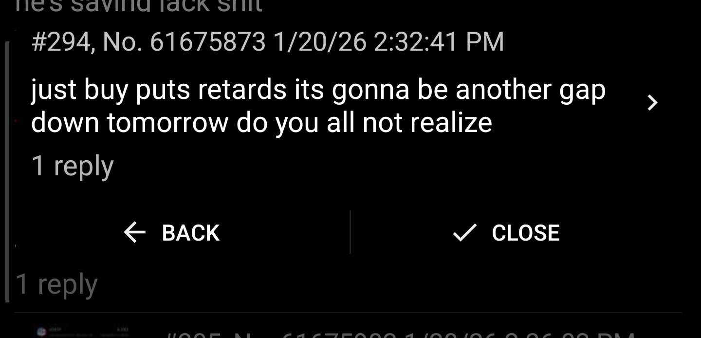 >>61684328if you size big then a few bad trades wipe you out, id save some money and not use more than 3% of buying power on any tradetoday was a decent 2 sided day but the taco shit was gay and made the last hour untradeablegood luck