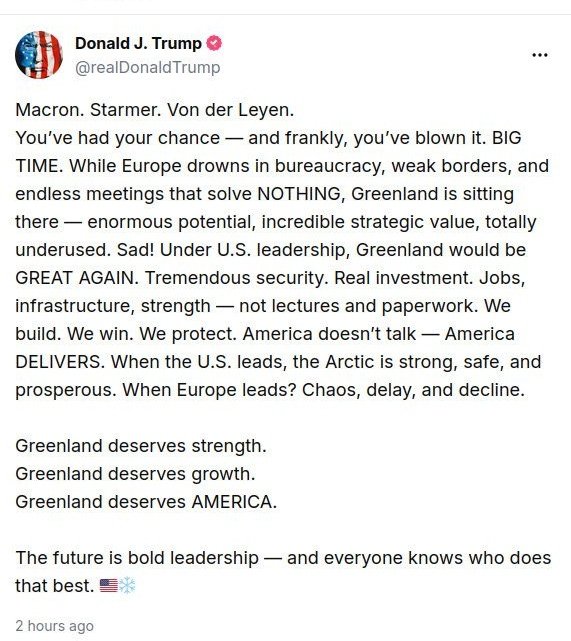 >>61683555Kek>Write a truth social post about how Greenland should be part of America and how much Europe sucks in the tone of Bonald J Blumpf