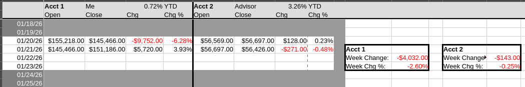 >>61684137Like I said above, most of my portfolio was in my employer's stock. I've been selling it off to buy indexes but I waited too long. I'm still 1/4 in my employer, I think I'll get rid of the last tomorrow. Everything else in my portfolio went up today, I just got fucked by this god damn job. Which I'm probably going to quit soon anyway.