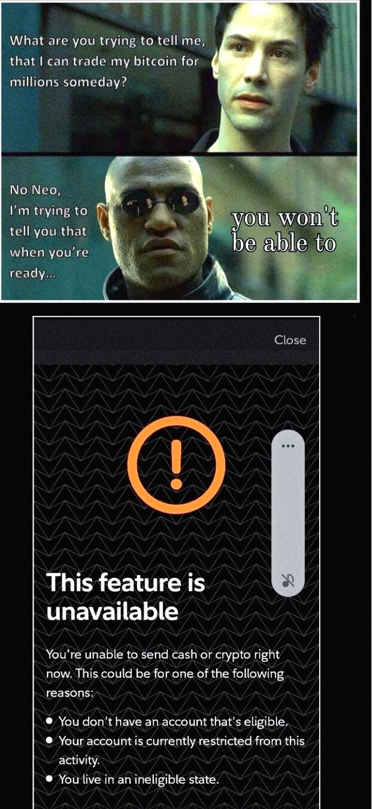 >>61686864coinbase is heavily regulated worldwide it's the only real fiat-crypto gateway for insitutionseverything else is faith and trust alone