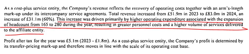>>61686528btw for people that don't know, this concerns CHAINLINK LABS, ie the developer branch of chainlink.The actual chainlink company is SMARTCONTRACT CHAINLINK LIMITED SEZC, which we don't know how much profit they make. Furthermore, look at this line (pic related): >as a cost-plus service entity, the companys revenue reflects the recovery of operating costs together with an arms length markup under its intercompany service agreementsfor any non retard, this means the REVENUE of chainlink LABS is 1:1 just what Smartcontract Ltd. GIVES THEM to pay the developers + a bit of overhead. So their REVENUE is quite literally just employment costs, not independent operations revenue.But fuddies will try to ignore this. It even says that in the report itself lmao: >This increase was driven primarily by higher operating expenditure, associated with expansion of HEADCOUNTso for any linkholders here, quite literally a nothingburger. Good tactic though to make retards sell that can't read