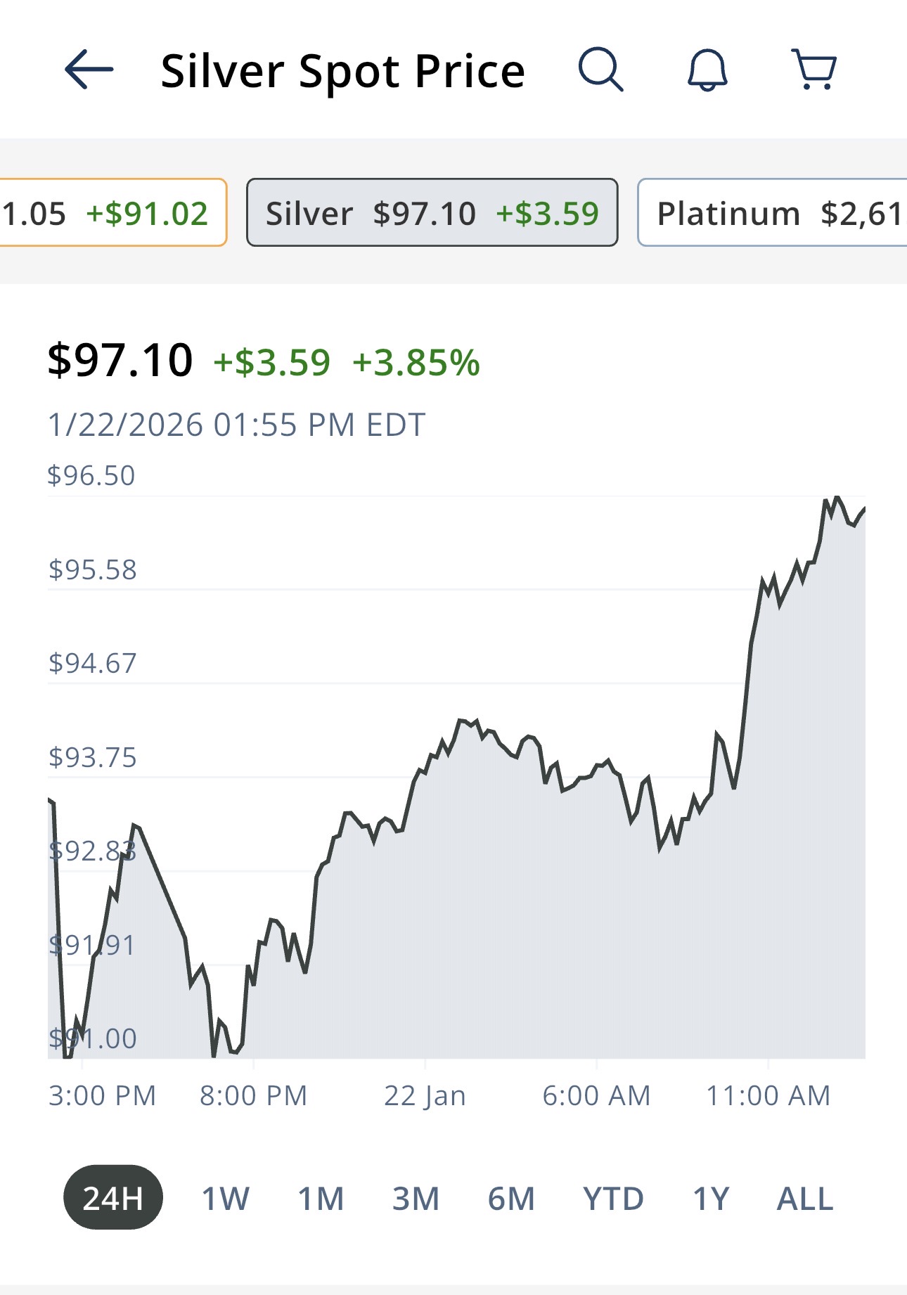 Reposting in this in the other current /pmg/ because I guess we're dual-wielding now.You guys remember yesterday when I said that regardless of what the price is doing, when the dealers start sending you "pls sell us your silver we'll pay u spot" texts and emails that it indicates it's a good time to buy? Silver spot had sharply fallen into the $91-$92 range when I posted that I had started receiving such messages. Today we're tickling $96. I told you paying attention to dealer communications is a good barometer. EVERY time they send out those sorts of messages silver takes off again a day later. Don't get shaky - it'll cost you.