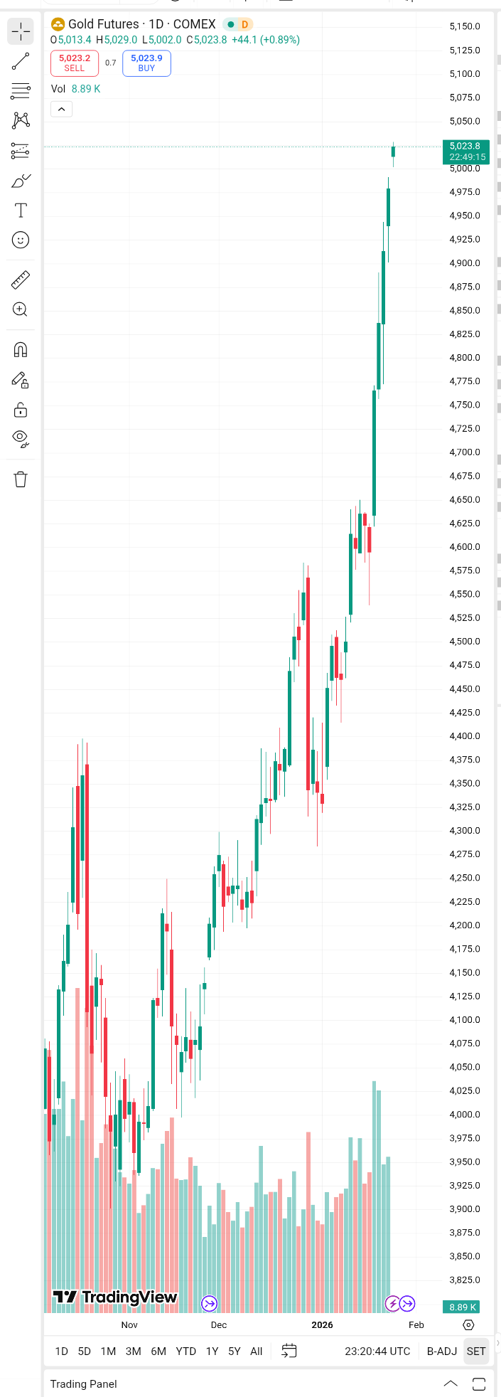 >gold casually opens over 5000