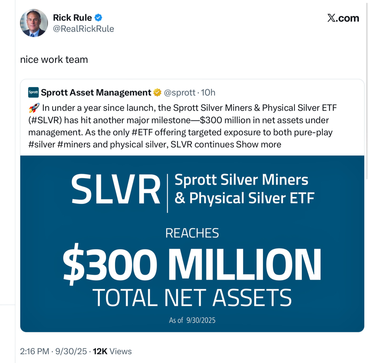 >>61709410I did what Rick Rule just did, and that was sell most of my paper silver, SLV/PSLV, and I bought SILJ shares and 2027 calls.
