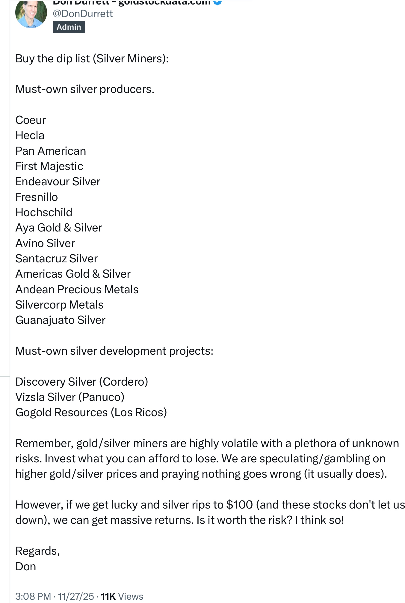 Dann. Pity that guy over on Wallstreetbets who opened a 300k short in silver yesterday.
