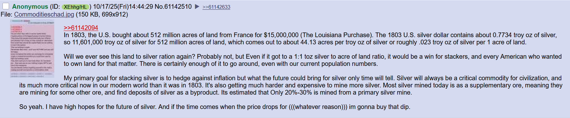 >>61716376How could I not remember that. This thread should be allowed only for anons who bought their first silver at least 3 years ago.