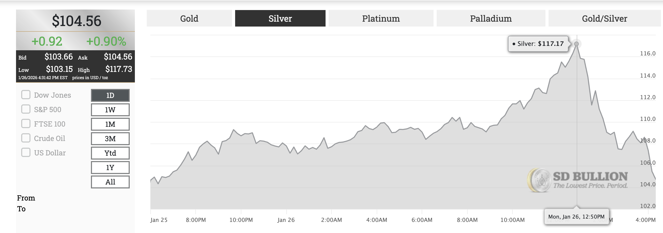 >silver crashes down to a higher price than it was yesterday