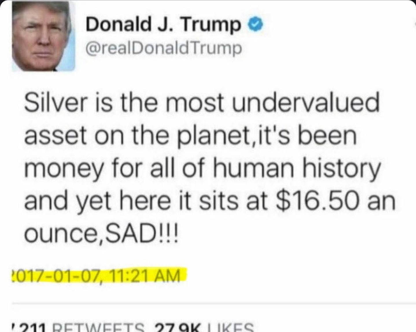 WHAT DID DONNY MEAN WITH THIS TWEET ABOUT SILVER IN 2017?