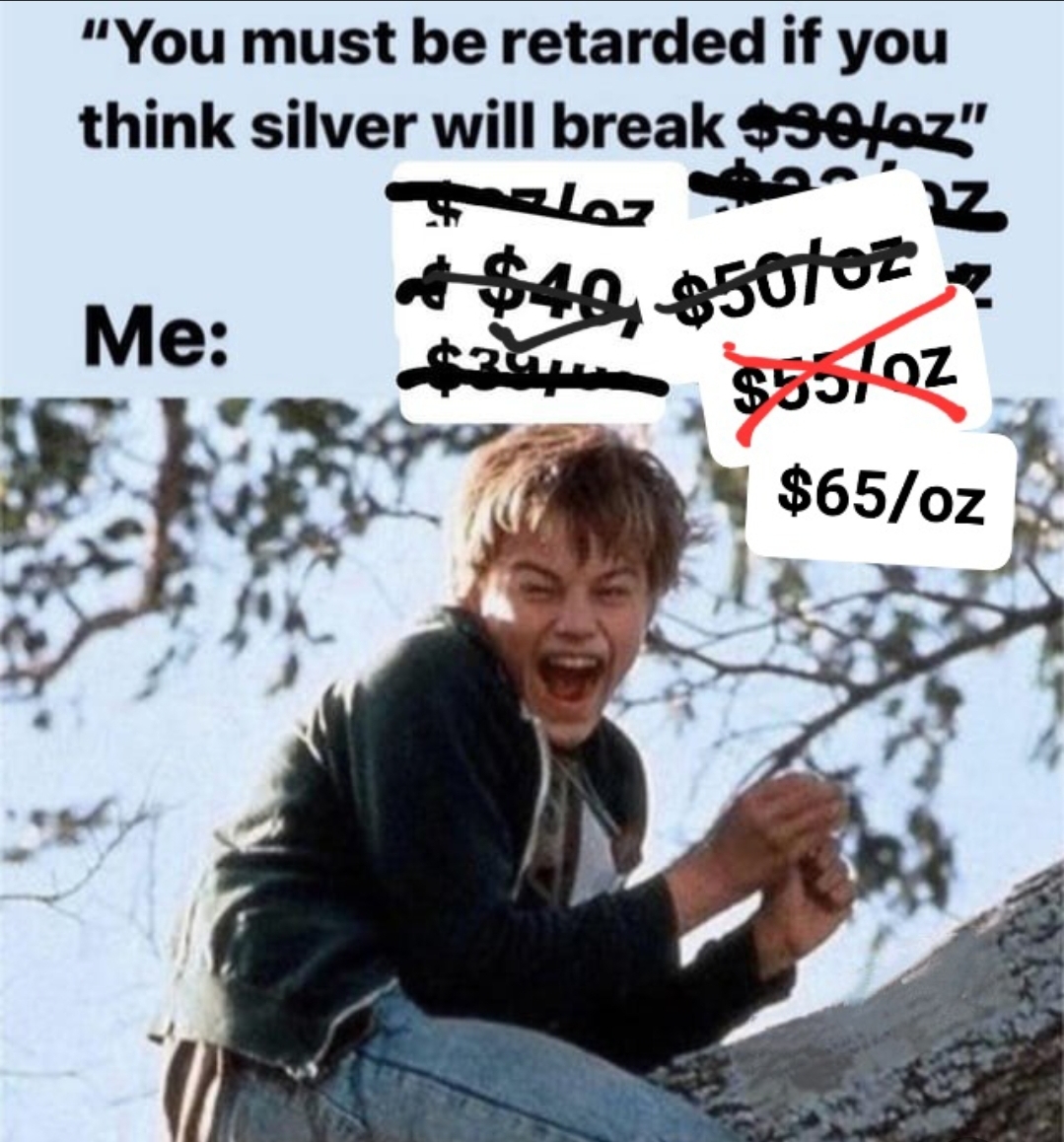 >>61720654>silver will NEVER hit $50 that's retarded>silver will NEVER hit $70 that's retarded>silver will NEVER hit $100 that's retardeddo you ever get tired of losing?