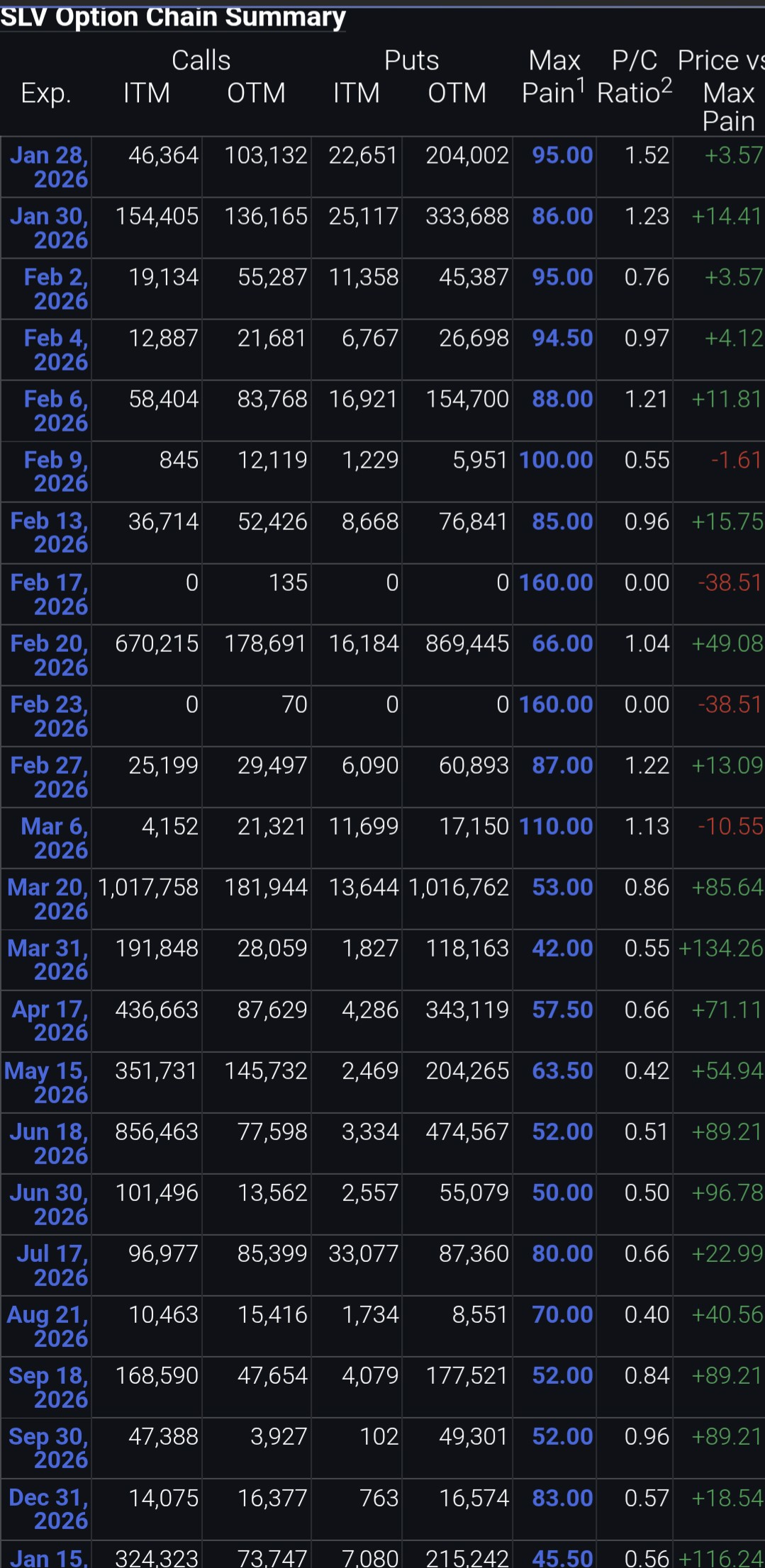 >>61724203the dates and prices are for slv ETF options contracts. two specific dates have fuckhuge losses coming up for folks who thought silver go down
