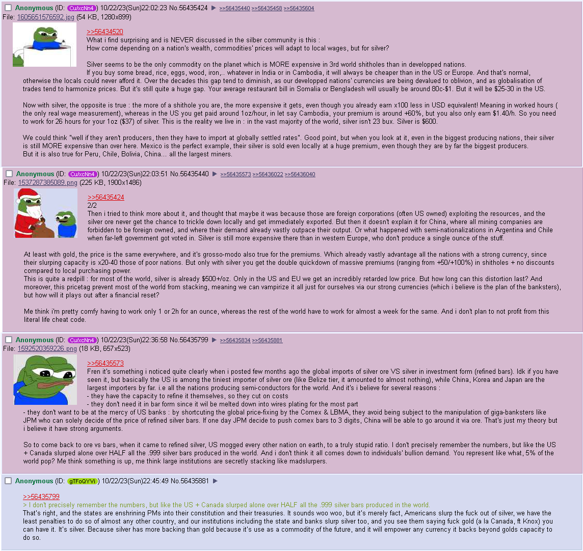 >>61724859>One of the uncomfortable truths of stacking is that we actually don't know the value of silver reallyThat's one of the most comfortable truths tho? I may not know what the exact number is, but I know it's way higher than what it is now.