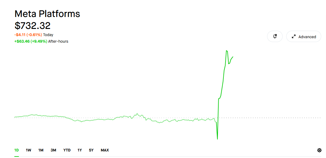 >>61732826Did the anti-american tech baker kill himself after META's earning call?Lmao. Still up 10% AH.